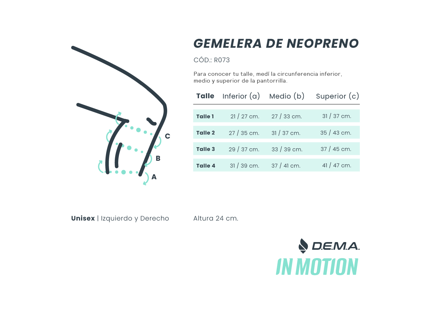 | Talle | Talle 1 (superior desde 25 cm hasta 33 cm), Talle 2 (superior desde 31 cm hasta 41 cm), Talle 1 (superior desde 35 cm hasta 45 cm), Talle 1 (superior desde 37 cm hasta 47 cm) |