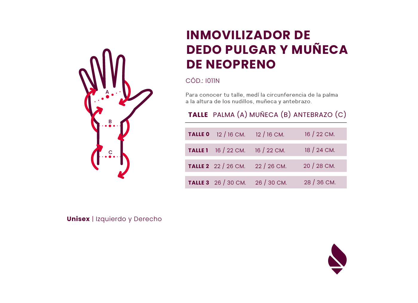 Descripción La férula es un tipo de soporte gradual que cumple la función de asistencia a nuestras articulaciones, ligamentos y grupos musculares, para ayudarte a superar una lesión y malestar o prevenir tensiones en momentos de mayor esfuerzo. El material en neoprene brinda calor terapéutico, lo que aumenta el riego sanguíneo para asistir a la dinámica del cuerpo. Inmoviliza las articulaciones de la muñeca y de pulgar, limitando el movimiento de flexo extensión de dichas articulaciones Patologías que requieran limitación total de la movilidad de muñeca y pulgar con contención antebraquiopalmar. Esguinces severos, tendinitis que afectan tendones flexores o extensores del carpo y dedos, tendinitis de quervain de grado severo, post operatorios, dislocaciones, luxaciones. Confección Férula inmovilizadora de dedo pulgar y muñeca elaborada en neopreno de 4 milímetros de espesor. Incluye cinco ballenas internas rígidas de contención. Cierre en abrojo Medidas Medir la circunferencia de la palma, la muñeca y del antebrazo. Talle 0: circunferencia palmar desde 11 cm hasta 17 cm; muñeca desde 7 cm hasta 13 cm; antebrazo desde 9 cm hasta 17 cm. Largo 25cm Como se utiliza 1.Abrir la prenda y posicionarla desde el pulgar hasta el antebrazo. 2.Cerrar los lazos en abrojo rodeando el antebrazo, muñeca y palma. 3.Ajustar la tira superior alrededor del dedo pulgar para inmovilizarlo.