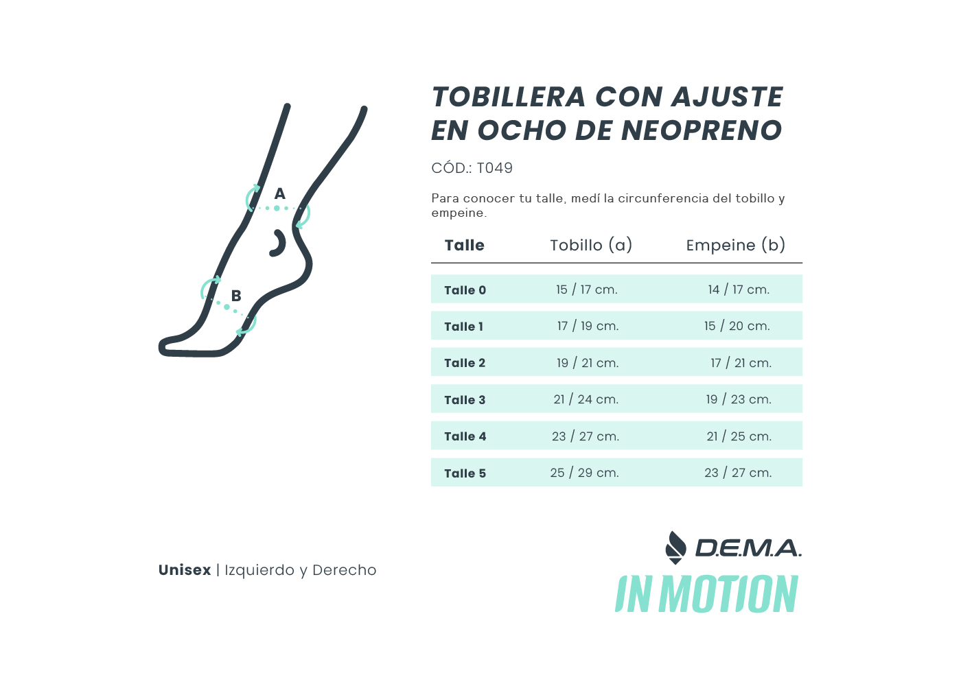 | Talle | Talle 1 (tobillo desde 17 cm hasta 19 cm), Talle 2 (tobillo desde 19 cm hasta 21 cm), Talle 3 (tobillo desde 21 cm hasta 24 cm), Talle 4 (tobillo desde 23 cm hasta 27 cm), Talle 5 (tobillo desde 25 cm hasta 29 cm) |