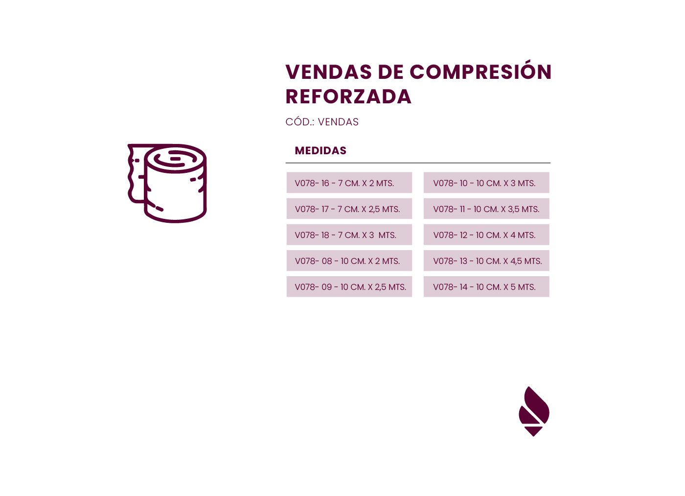 Descripción Ejercer compresión controlada y progresiva sobre las estructuras anatómicas musculoesqueléticas como vasculares de la zona a tratar. Favorecer el retorno venoso y linfático, disminuyendo el edema. Patologías que presenten edema de partes blandas, acumulación del líquido tisular y/o articular, por mal retorno venoso o linfático. Insuficiencia venosa aguda y crónica, insuficiencia linfática, síndromes varicosos, hidrartrosis, hemartrosis, amputaciones de las extremidades para disminuir edema del muñón y favorecer el modelado del mismo, así como mejorar el dolor del miembro fantasma. Deportiva Confección Venda confeccionada en algodón. Cierre en gancho. Medidas Altura 10cm.